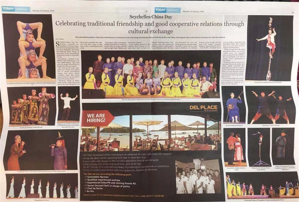 據(jù)了解,根據(jù)文化和旅游部2019年“歡樂春節(jié)”任務(wù)的總體安排,經(jīng)內(nèi)蒙古自治區(qū)人民政府批準(zhǔn),翁牛特旗烏蘭牧騎于1月17日至28日先后在埃塞俄比亞、盧旺達(dá)、塞舌爾進(jìn)行演出;巴林右旗烏蘭牧騎1月24日至2月2日赴印度、不丹演出。