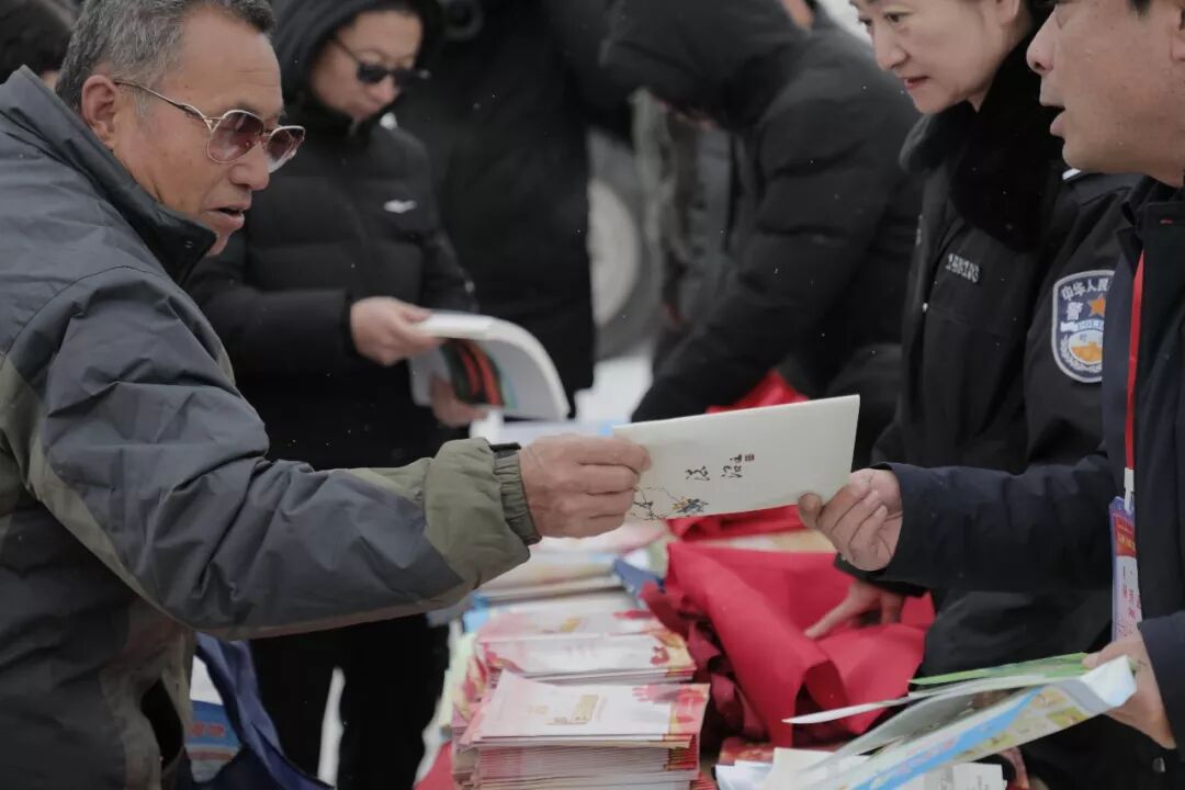 設(shè)置民族政策法律宣傳服務(wù)展區(qū),為現(xiàn)場群眾發(fā)放宣傳資料。