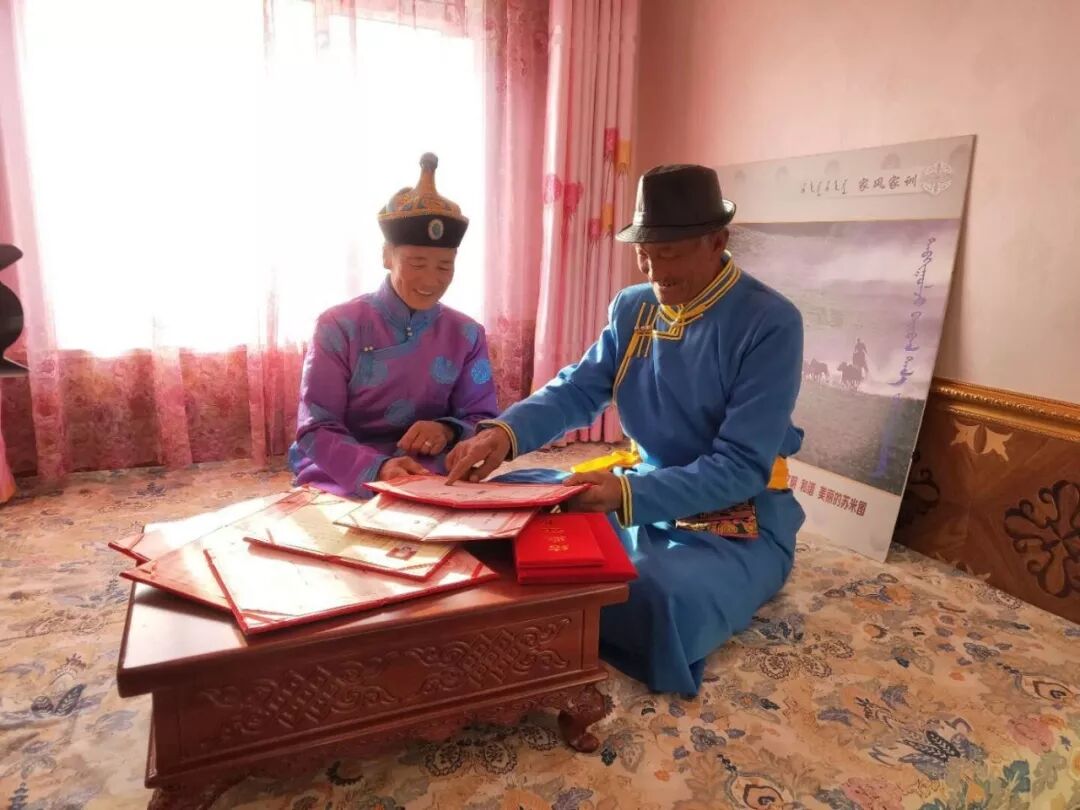 56歲的斯琴高娃是鄂托克旗蘇米圖蘇木查漢敖包嘎查有名的“精巴媳婦”。走進斯琴高娃的家里,最大的感受是“凈”,干凈、潔凈、明凈。自與阿騰烏拉成家起,便把日子過得干凈爽利,1986年便被評為全蘇木的“文明戶”。在一排書柜上,一摞紅彤彤的獎狀是最惹眼的“家飾”,全旗蒙古語演講比賽、首屆全市“夢想鄂托克杯”詩歌大賽等多個比賽中,她都獲得了優(yōu)秀獎。